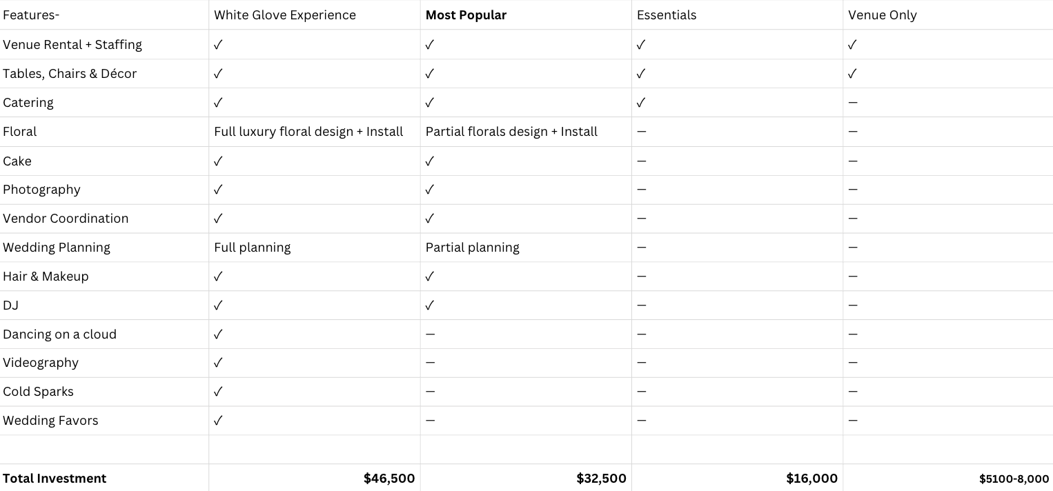 Our most elevated, hands-off wedding experience designed, planned, and executed seamlessly from start to finish.